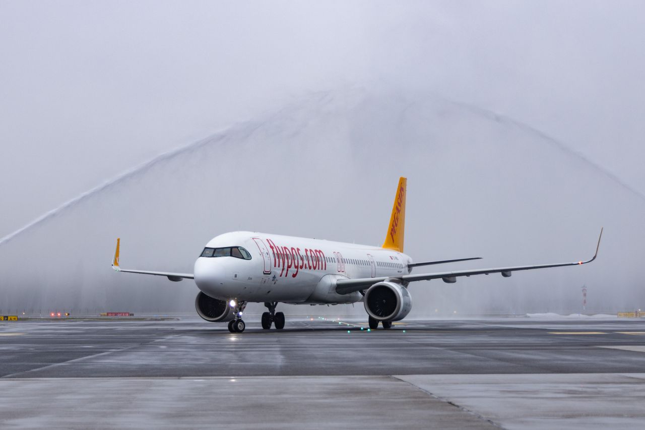 PEGASUS UÇAĞI LYUBLYANA HAVALİMANI’NDA SU TAKI İLE KARŞILANDI