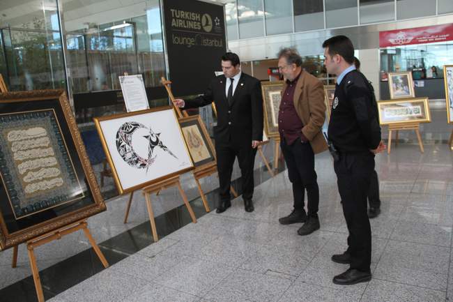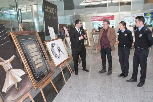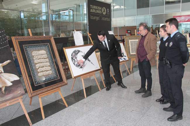 Kaligrafi tarzındaki çalışmalarını düzenlenen sergide yolcuların beğenisine sunan Polis memuru Ali Kaçmaz, “Türk polis teşkilatının 173’üncü kuruluş yılı etkinlikleri kapsamında bu çalışmaları yaptık. Türk insanını ve Türk polisini temsil ettiğimizi düşünüyoruz. Aynı zamanda da yabancı yolcular geldiğinde ilk defa Türk insanını ve Türk polisi olarak bizi görecekleri için burada turistik olarak da bir amaç taşıması, ülkemizin vizyonu açısından da bunu gerçekleştirdik. Bu benim dördüncü sergim. Daha önce de kişisel sergiler gerçekleştirdim” şeklinde konuştu.