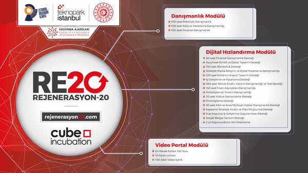 Teknopark İstanbul’un Kuluçka Merkezi Cube Incubation’ın İstanbul Kalkınma Ajansı tarafından desteklenen “Girişimcilik Ekosistemi Yenilenme Projesi: Rejenerasyon-20” projesi için başvurular başladı. Evde yaşam, erişim/lojistik, uzaktan çalışma ve sosyal girişim konularında çalışmalar yapan ön kuluçka ve kuluçka aşamasına gelen girişimcilerin başvurabileceği proje girişim ekosisteminin yeniden yapılanmasını kapsıyor.
