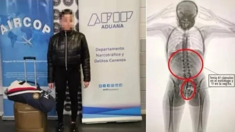 Kokain kaçırmaya çalışan kadının vajinasından prezervatife sarılmış 11 kapsül bulunurken 67 kapsül de midesinden çıktı. Buenos Aires’teki Ezeiza Uluslararası Havalimanı’nda yaşanan olay uluslararası kamuoyunun gündemine oturdu.