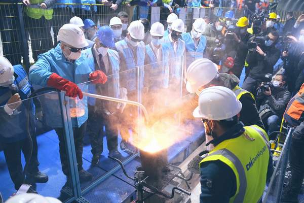 Konuşma sonrası Bakan Karaismailoğlu ve beraberindekiler ilk ray kaynağını yaptı.