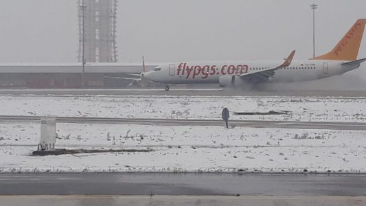 Sabiha Gökçen Havalimanı’nda yoğun kar yağışına rağmen uçak seferleri kesintisiz devam ediyor.İstanbul’da etkili olan kar yağışının Sabiha Gökçen Havalimanı’ndaki uçak seferlerini etkilememesi için kar temizleme çalışmaları aralıksız sürüyor. Havaalanı İşletme ve Havacılık Endüstrileri A.Ş’nin (HEAŞ) uzman ekipleri, 7/24 esasına göre 41 araç ve ekipmanla pist, apron ve diğer alanlarda temizlik çalışmalarını yapıyor.