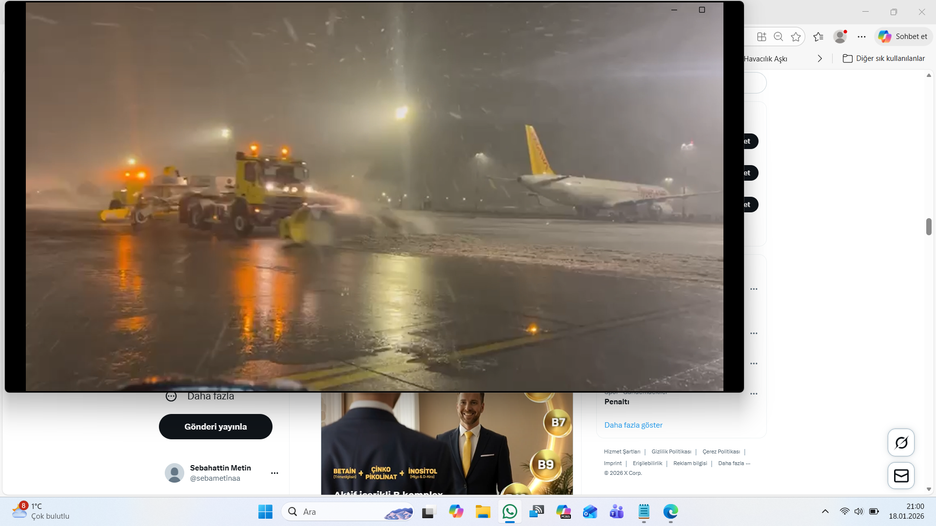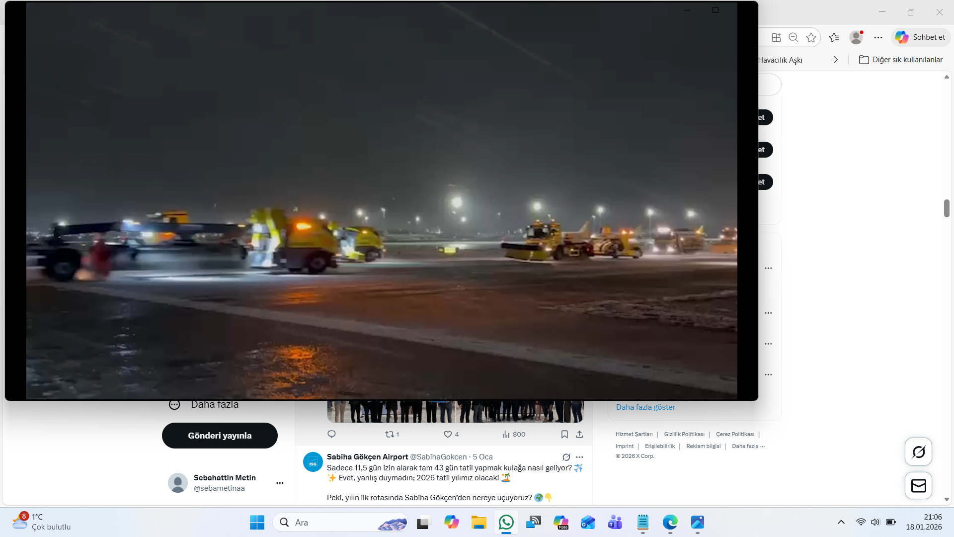Sabiha Gökçen Uluslararası Havalimanı Meydan Otoritesi HEAŞ, akşam saatlerinde İstanbul’da yaşanan kar yağışı kapsamında kar ve buzla mücadele faaliyetlerini sürdürüyor.