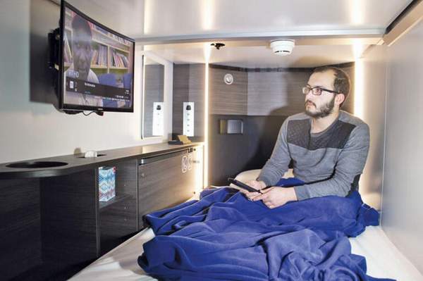 ”Yolcu geldiğinde rezervasyon yaptırmak için onlara özel üretilmiş cihazlardan check-in işlemlerini yapıyor. Daha sonrasında ürettikleri QR kod vasıtasıyla lounge alanına giriyor. Lounge alanına girer girmez kendilerine özel olarak ayrılmış şifreli saklama dolaplarına eşyalarını koyarak, uyku kabinlerine giriyor. İçeride bir tane televizyonumuz var. Yolcularımız bu televizyon vasıtası ile Kablo TV, Netflix, Blu TV gibi internet platformlarını takip edebilecek.