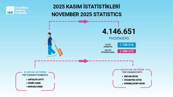 İstanbul Sabiha Gökçen Havalimanı sosyal medya hesabından Kasım ayı yolcu istatistiklerini açıkladı.