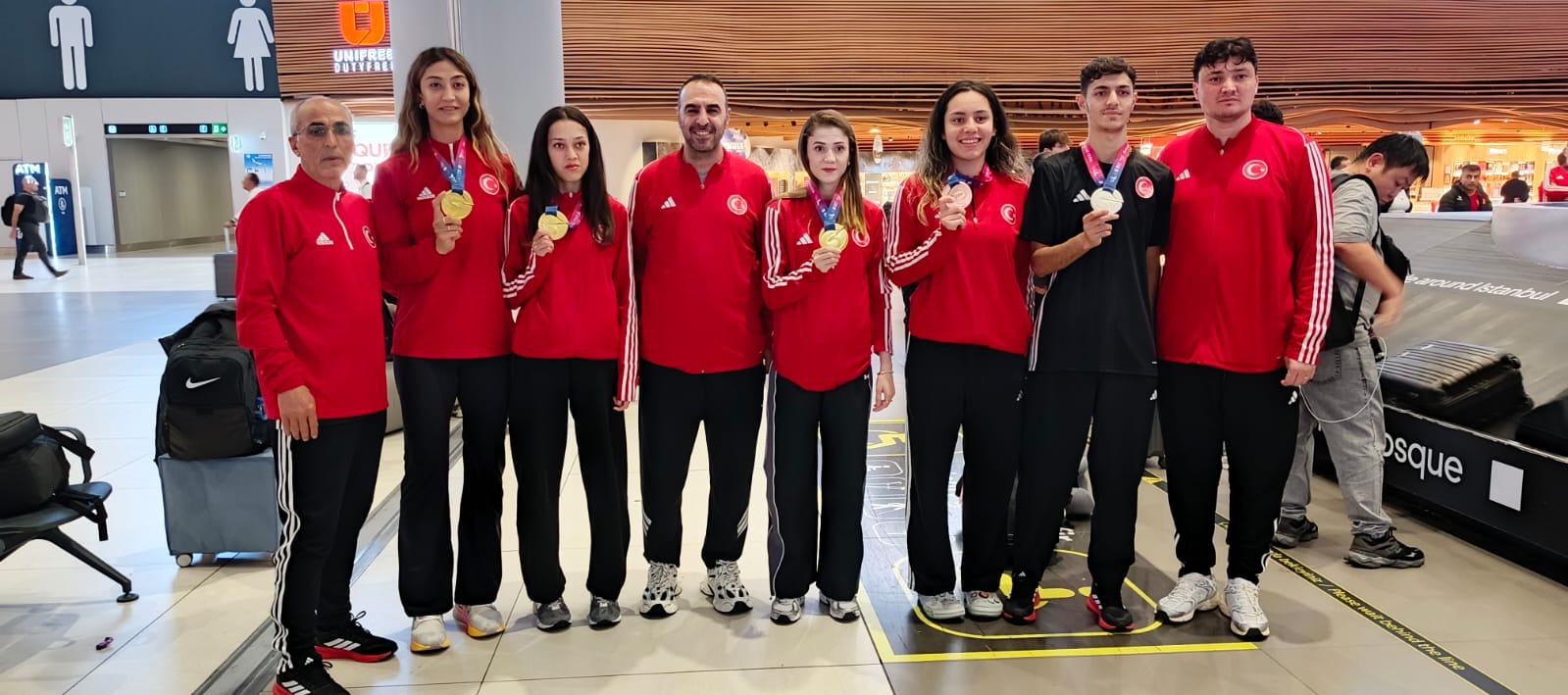 Çin’in Wuxi kentinde düzenlenen şampiyonada takım halinde birinci olan Taekwondo Milli takım kafilesi Doha’dan İstanbul’a geldi. Milli Takım kafilesi İstanbul Havalimanı’nda Türkiye Teakwondo Federasyonu Başkanı Bahri Tanrıkulu ve oyunların ailesi tarafından çiçeklerle karşılandı.