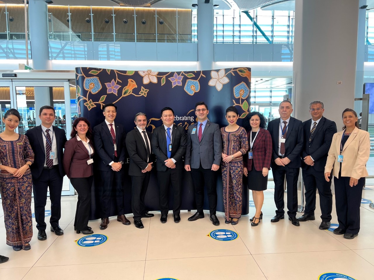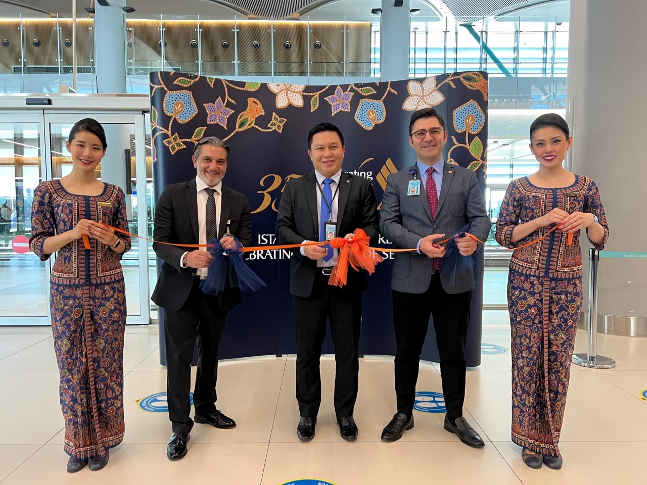 Türkiye Cumhuriyeti’nin kuruluşunun 99. yıldönümüne denk gelen bu özel günde, 29 Ekim 2022 tarihinde, Singapur Hava Yolları Türkiye Genel Müdürü Sn. Hongyao Hu, Singapur Hava Yolları’nın 1987 yılından bu yana süregelen yer hizmetleri partner şirketi olan Havaş’ın Satış ve Pazarlama Genel Müdür Yardımcısı Sn. Engin İdemen ve Nisan 2019’dan bu yana faaliyet gösterdiği İGA İstanbul Havalimanı Havacılık Geliştirme Müdürü Sn. Gökhan Dölek ile biniş kapısında yıl dönümü kurdelesini kesti. Check-in ve uçağa biniş sırasında tüm yolculara hediye ve çikolata dağıtıldı.