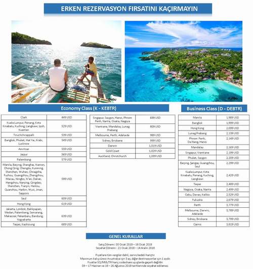Biletlerini 5-18 Ocak 2018 tarihleri arasında alan Singapur Havayolu yolcuları 21 Ocak-14 Aralık 2018 tarihlerinideki seyahatlerini kampanya fiyatlarıyla gerçekleştirecek.