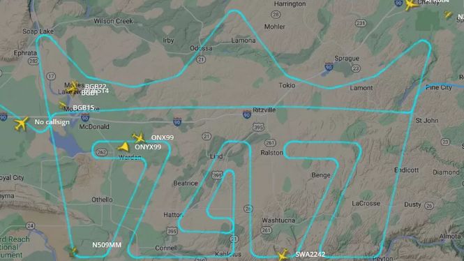 Uçuş ekibi, bu son uçuş için özel bir rota izleyerek havada 7, 4 ve 7 rakamlarıyla devasa bir kraliyet tacı çizdi.