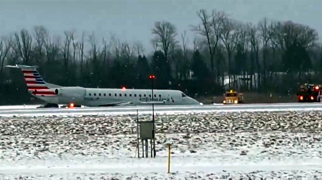 ABD’de Philadelphia-Rochester seferini yapan American Eagles’a ait Embraer ERJ-145LR tipi uçak, Frederick Douglass Greater Rochester Uluslararası Havalimanı’na inişinin ardından pistten pistten ayrıldıktan sonra taksi yolundan çıktı.