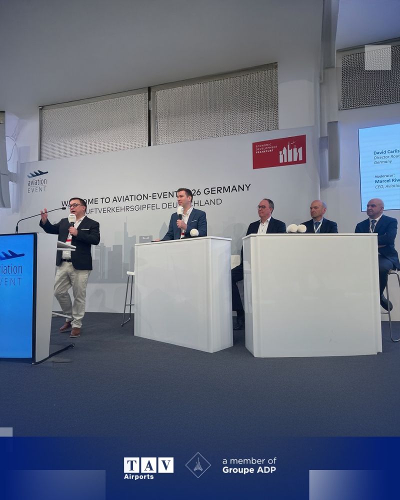 TAV Havalimanları Havalimanlarından Sorumlu Grup Başkanı Mete Erna, Frankfurt’ta düzenlenen ve küresel havacılığın güncel dinamiklerinin ele alındığı Aviation-Event 2026 kapsamında sektör temsilcileriyle bir araya geldi.