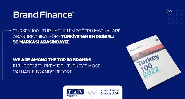 TAV Havalimanları , Londra merkezli uluslararası marka değerlendirme ve strateji kuruluşu Brand Finance’in 2022 yılı ‘TURKEY 100 – Türkiye’nin En Değerli Markaları’ araştırmasında ilk 50 marka arasında yer aldı.