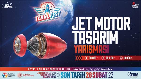 Türkiye’nin havacılık motorlarında lider şirketi TEİ yürütücülüğünde, TEKNOFEST Havacılık, Uzay ve Teknoloji Festivali kapsamındaki Jet Motor Tasarım Yarışması havacılık alanına ilgi duyan, Türkiye’de ve yurt dışında öğrenim gören ön lisans, lisans, yüksek lisans, doktora ve açık öğretim öğrencilerini bekliyor.