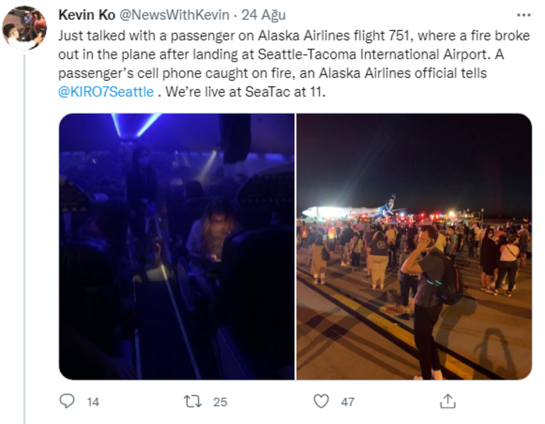 Akıllı telefonlar başta olmak üzere elektronik cihazların neredeyse tamamında patlamaya müsait batarya yapıları bulunuyor. Bu sebeple uçak yolculuklarında telefonların kapatılması ya da uçak moduna alınması isteniyorken, bir yolcunun telefonu alev aldı. ABD’de gerçekleşen olayda 128 yolcunun bulunduğu uçak acil iniş yaptı.