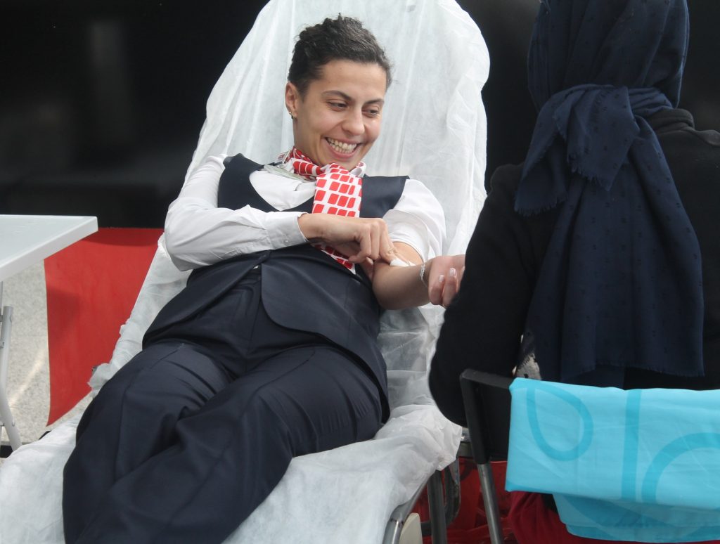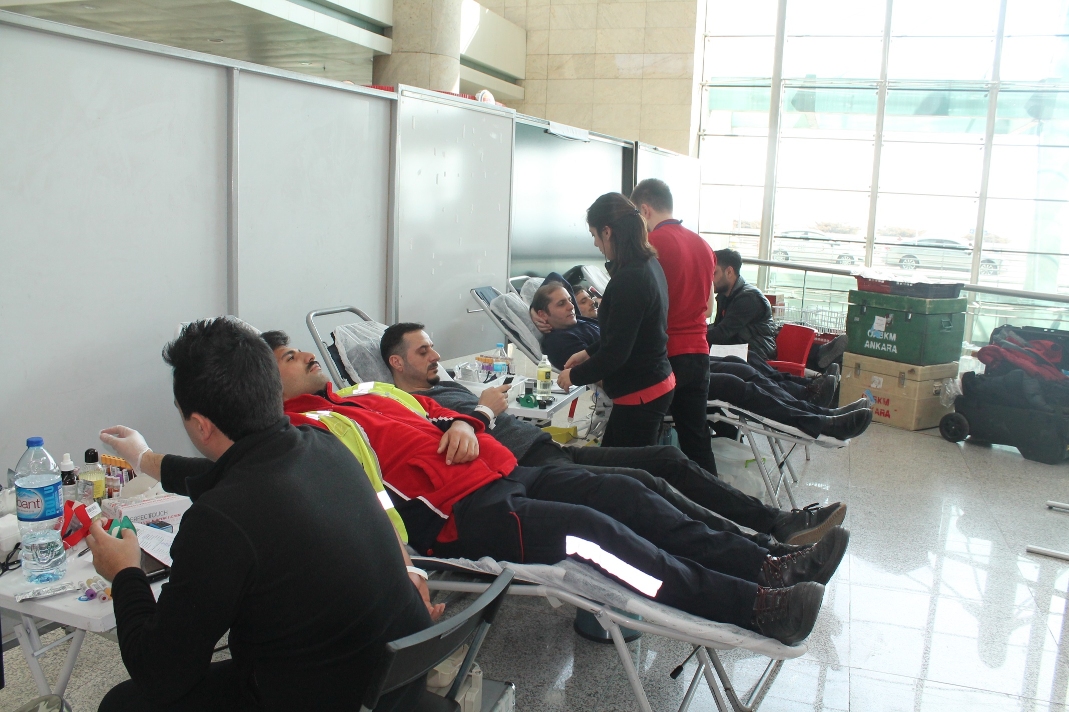 Beş yıldır düzenlenen kan bağışı kampanyasına Esenboğa Havalimanı çalışanları başta olmak üzere yolcular da katılım gösterdi.