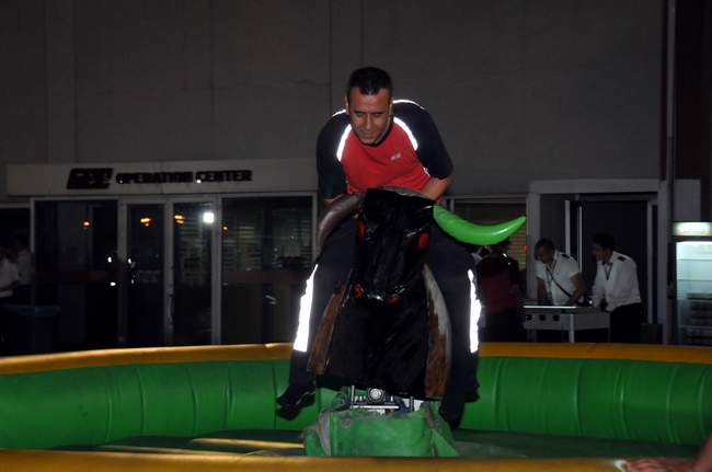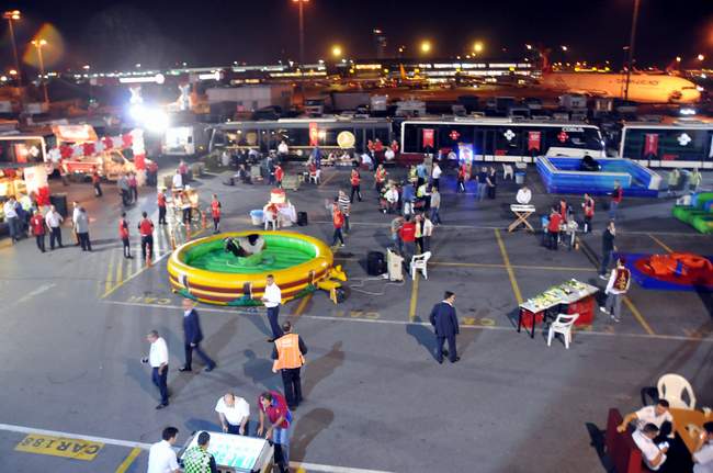 Atatürk Havalimanı Turkısh Ground Services (TGS) apronunda kurulan ve 4 gün sürecek olan Ramazan etkinlik alanında personel sahur vaktine kadar hem yemek yiyecek hem de kurulan oyun alanlarında stres atacaklar. Etkinlik alanında yemek stantlarının yanı sıra, şut çekme, koridor yarışması, rodeo, boks makinası ve langırt gibi oyun alanları bulunuyor. Turkısh Ground Services etkinlik alanında her gün yaklaşık bin 700 kişiye ikram ve hediye dağıtıyor.