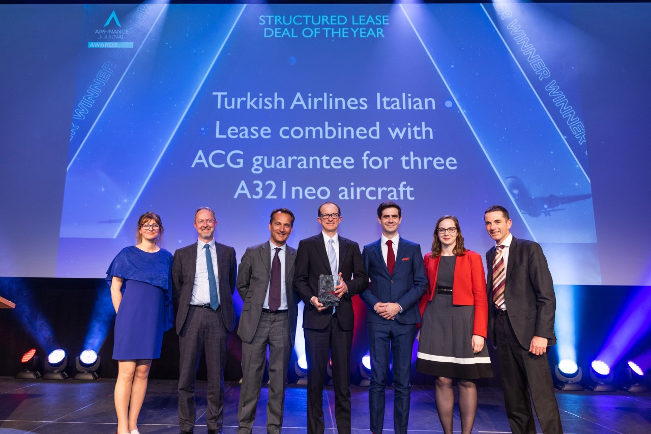 Türk Hava Yolları, ACG garantili İtalyan vergi kalkanlı finansman yapısını ilk kez kullanan havayolu olarak, Societe Generale tarafından finanse edilen 3 adet A321 NEO uçağının ve BNP Paribas’ın aranjörlüğünde BNP Paribas, Citibank, Bank of America ve CaixaBank tarafından US Ex-Im garantili Fransız vergi kalkanlı yapı ile finanse edilen 9 adet B737 MAX uçağı ile 3 adet GEnx yedek motorun yaklaşık 550 milyon USD değerindeki finansmanlarıyla; “Yılın Finansmanı (Avrupa)”, “Yılın Yapılandırılmış Finansmanı”, “Yılın Anlaşması (Global)” ve “Yılın Anlaşması (Avrupa)” ödüllerini aldı.