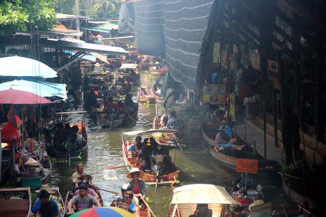 Bangkok’a 104 km uzaklıkta yer alan Damnoen Floating Market (Yüzen Çarşı), ülkenin en turistik on noktasından biri. Sabahın erken saatlerinden itibaren, hediyelik eşyalar, meyve ve sebze doldurdukları tekneleriyle, kanallarda dolaşan Taylandlılar, eşsiz ve rengarenk bir sahne sunuyor. Tayland ile ilgili belgesellerin ana konularından biri olan yüzen çarşı, hem alışveriş için hem de fotoğraf çekmek için nefis bir yer; mutlaka gezilmeli.