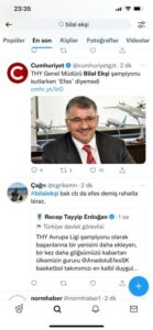 Ekşi, Twitter hesabı üzerinden Anadolu Efes’in şampiyon olduğu anları paylaşarak “…. ve Anadolu kazandı” diye yazdı.