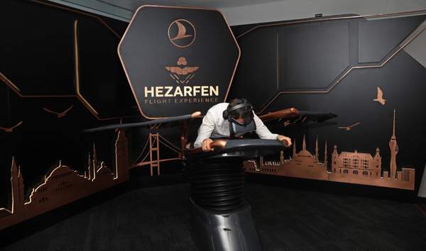 Türk Hava Yolları “Hezarfen” uçuş simülatörünü Özel Yolcu Salonu’nda misafirlerinin deneyimine sundu.