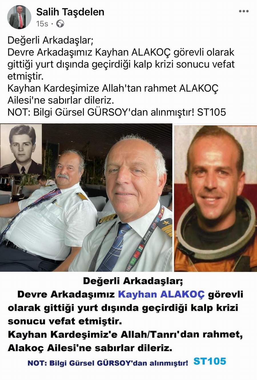 Türk Hava Yolları (THY)Kaptan Pilotu Kayhan Alakoç, görevli olarak gittiği yurt dışında geçirdiği kalp krizi sonucu hayatını kaybetti.