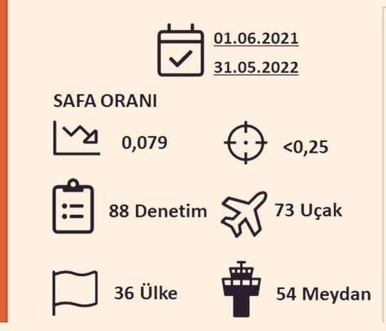 Son bir yılda 36 ülkede uçaklara yabancı otoriteler tarafından 88 SAFA denetlemesi yapıldığını belirten Ekşi, “Puanımız 0,079, neredeyse sıfır bulgu. Sizleri her zaman emniyet ve konforla uçaklarımızda misafir etmekten memnunuz.” ifadelerini kullandı.