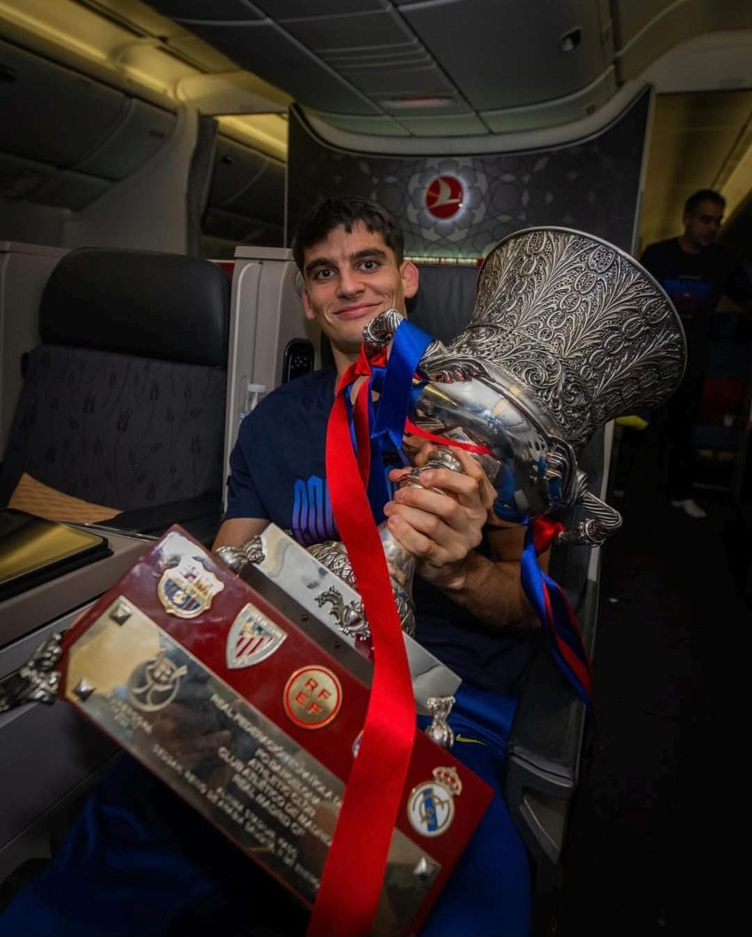 Suudi Arabistan’ın Cidde şehrindeki Kral Abdullah Spor Şehri Stadyumu’nda oynana Süper Kupa finalini Real Madrid’i 3-2 yenerek kupanın sahibi olan Barcelonalı Türk Hava Yolları (THY) tarafından icra edilen özel uçuşla İspanya’ya döndü. Şampiyonluk kupasıyla THY uçağına binen futbolcular ilk kutlamayı da gökyüzünde yaptı. Futbolcular kupayla poz verirken o fotoğraflar kulübün sosyal medya hesabında paylaşıldı.
