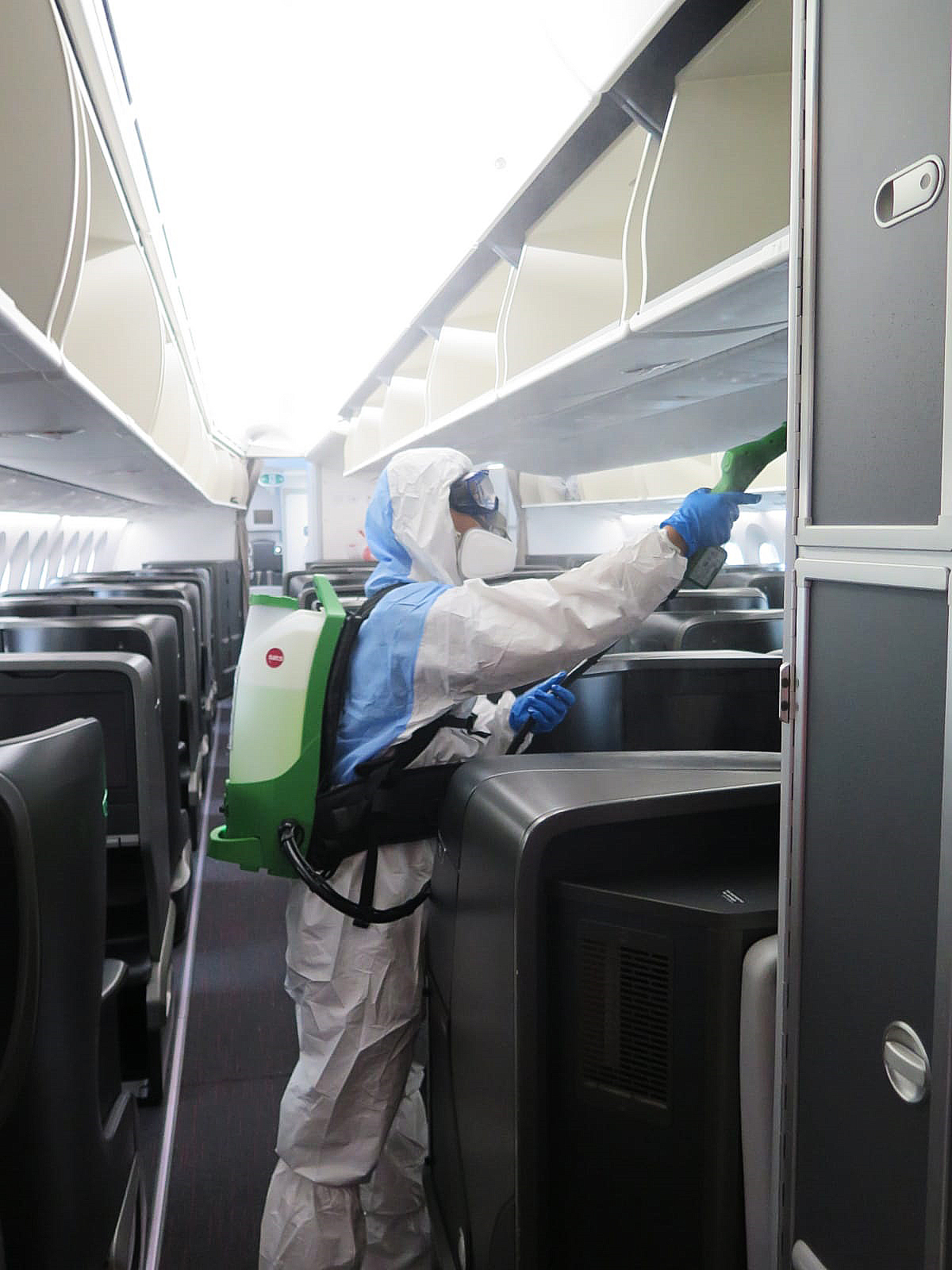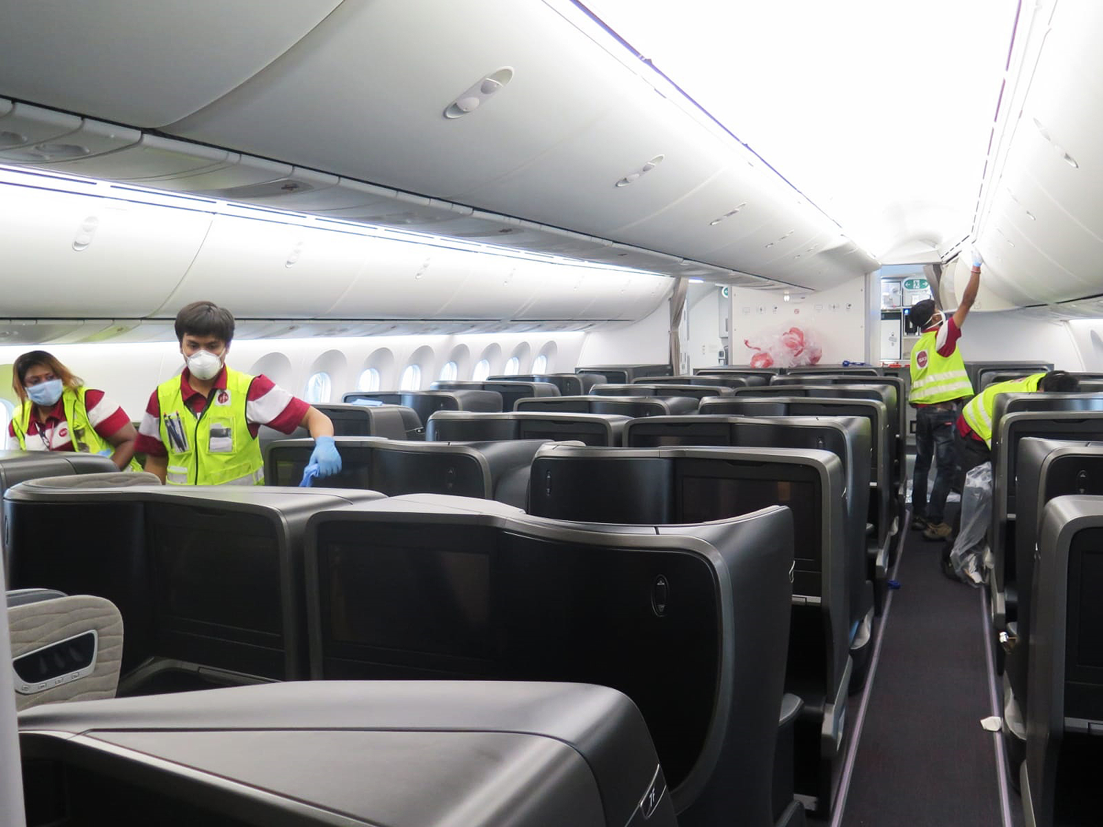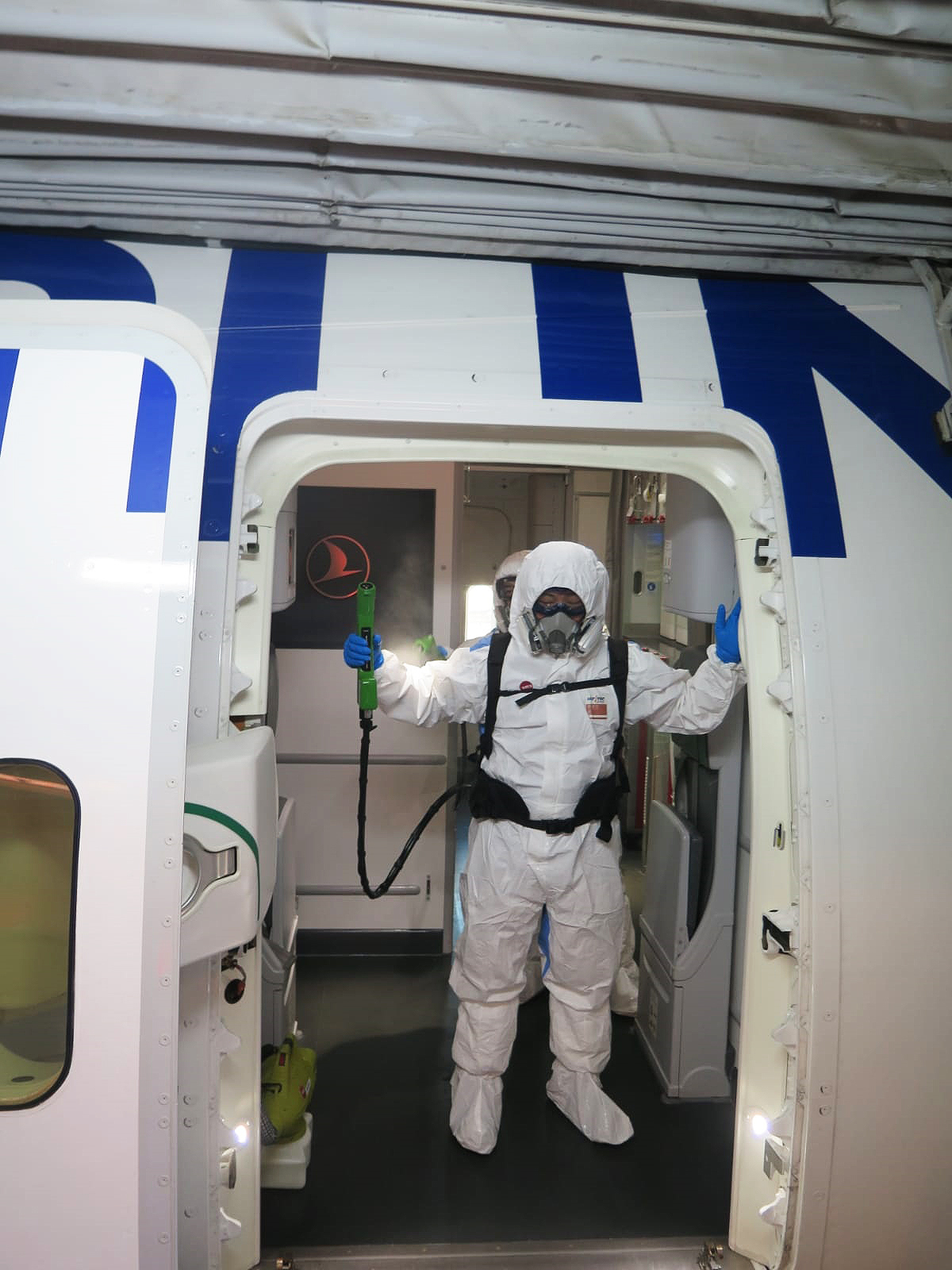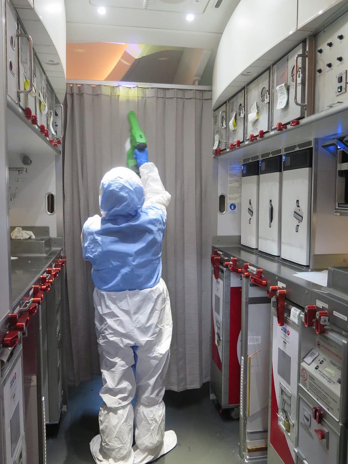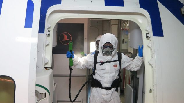 Dezenfeksiyon işlemi ile baş üstü dolapları, pencereler, koltuk başları, koltuk kenarları, mutfak ve lavabolar başta olmak üzere yolcuların ve uçuş ekibinin temas ettiği her nokta derinlemesine temizleniyor. Her uçuştan sonra battaniye ve yastık gibi tekstil ürünleri değiştirilerek yüksek sıcaklıkta yıkama işlemi uygulanıyor.