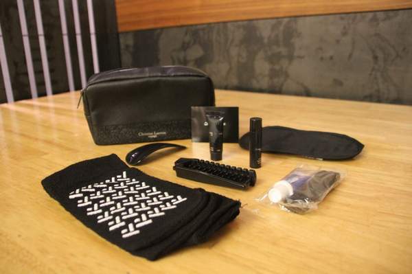 Her iki seyahat kitinin içerisinde de yolcuların seyahat boyunca ihtiyaç duyabileceği; tarak, çorap, ayakkabı çekeceği, kulak tıkacı, göz bandı ve uyarı çıkartmaları ile birlikte markanın kendisine ait dudak losyonu ve el losyonu bulunuyor.