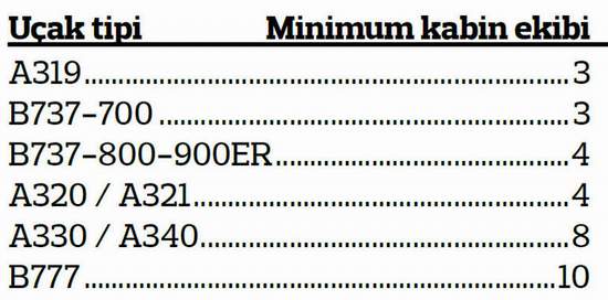 HANGİ UÇAK TİPİNDE KAÇ KABİN MEMURU GÖREV YAPIYOR