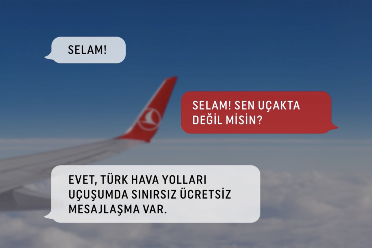 Türk Hava Yolları (THY) yurt dışı seferlerinde tüm yolcularına sınırsız mesajlaşma hakkı tanıyor.