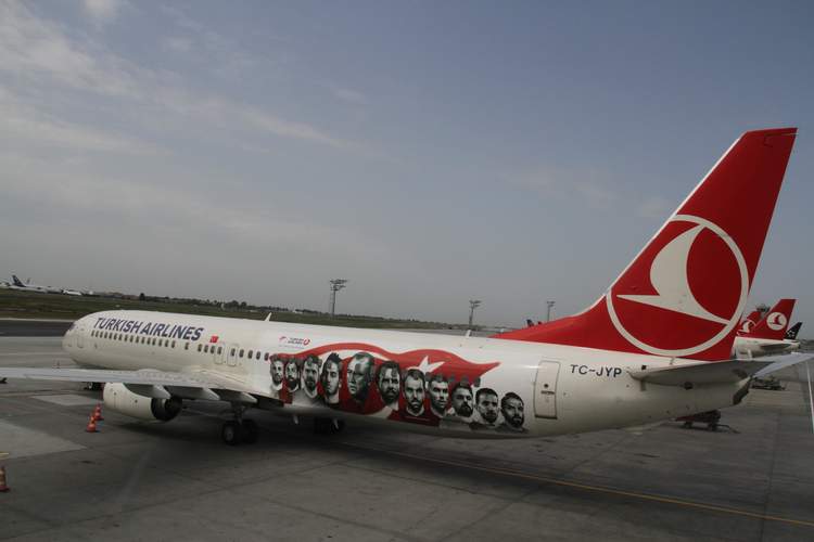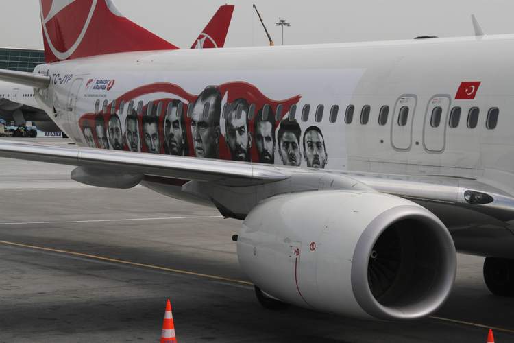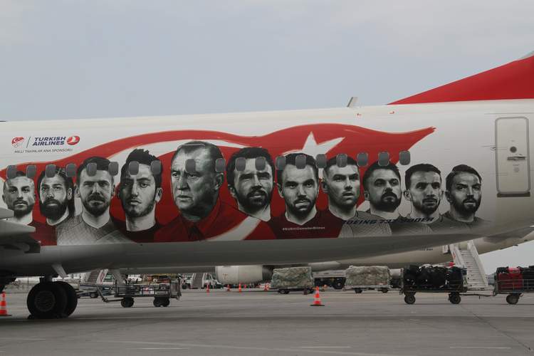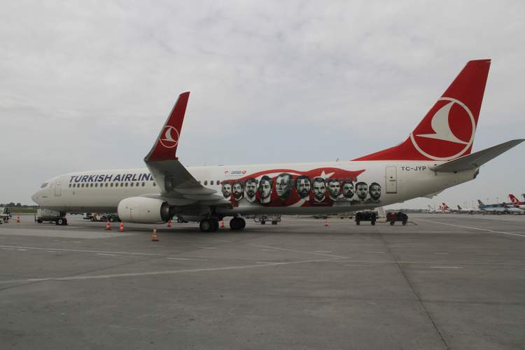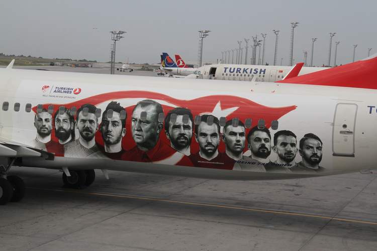 Türk Hava Yolları,  Türk Milli Takımını EURO 2016  Futbol şampiyonasına götürecek olan Boeing 737-900ER tipi uçağını futbolcuların ve teknik ekibin fotoğrafları ile süsledi. Uçağın dışına Fatih Terim ve tüm milli futbolcuların fotoğraflarını giydiren Türk Hava Yolları, Türkiye Futbol Direktörü Fatih Terim’e jest yaparak uçağın yeni haliyle ilk uçuş noktası olarak Adana’yı seçti. İlk uçuşunu Türkiye Futbol Direktörü Fatih Terim’in memleketi olan Adana’ya yapan THY’uçağı, A Milli Futbol Takımı’nı Euro 2016’daki karşılaşmalarına götürüp getirecek.