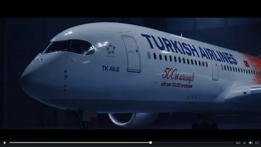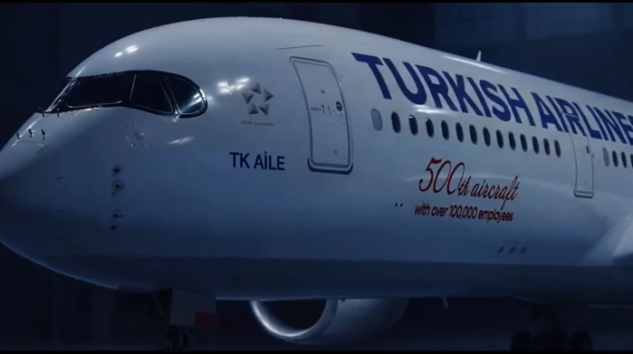 Türk Hava Yolları2nın ”TKAile” adını verdiği ve şirket çalışanlarının fotoğraflarıyla donattığı 500. uçağı Airbus A350 özel bir uçuşla gökyüzüne imzasını attı.