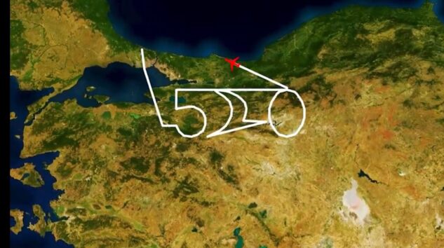 Uçak, Türk semalarında ortasındaki sıfırın THY logosu şeklinde çizildiği özel rotası ile 500 rakamını çizdi.