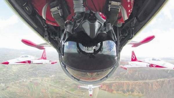 Konya’da pazar günü gösteri yapan Türk Yıldızları, yine herkesi kendilerine hayran bıraktı. Dünyada 8 süpersonik uçakla gösteri yapan tek akrobasi timi olan Türk Yıldızları’nın, bu yıl Türkiye’de üçüncüsünü yaptıkları gösterilere timin en tecrübeli pilotunun yaptığı ters uçuş figürü damga vurdu. Gösteride 4’lü kol uçuşuyla izleyicilerin görüş alanına giren 4 uçaktan 1 numaralı F-5 uçağını kullanan pilot, diğer 3 uçak düz uçarken aniden terse döndü. Ters haldeyken uçağın hassas kumandasıyla gösteri hareketini yapmaya devam eden pilot, dakikalarca ters uçtu. Yerden 200 metre yüksekte, koldaki 3 uçakla da arasında 1 metreden daha az mesafe varken hareketi başarıyla tamamlayan pilotun ters uçuş hareketi ayakta alkışlandı.