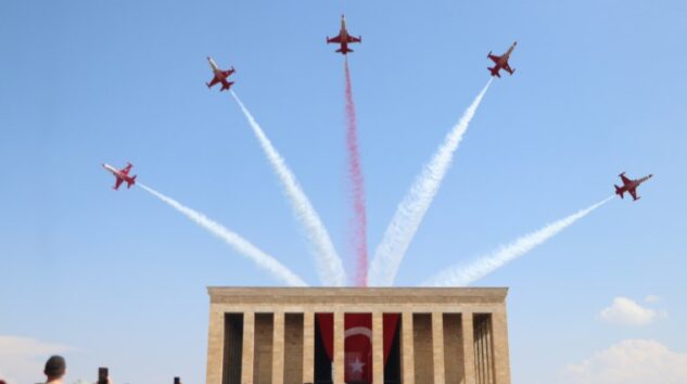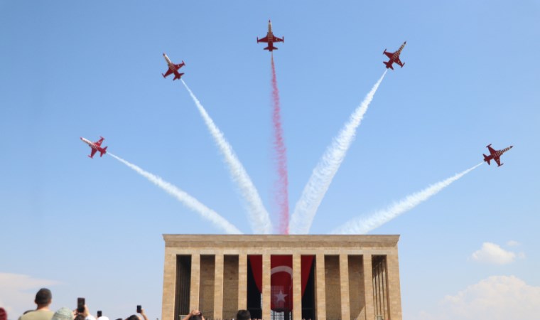 Türk Hava Kuvvetleri akrobasi timi Türk Yıldızları, 30 Ağustos Zafer Bayramı nedeniyle Anıtkabir semalarında Ata’ya saygı uçuşu yaptı.