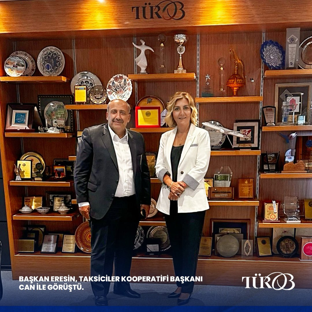 Türkiye Otelciler Birliği Başkanı Müberra Eresin, TÜROB Genel Merkezini ziyaret eden İstanbul Havalimanı Taksiciler Kooperatifi ve aynı zamanda Tüm Havalimanları Birlik Başkanı (TÜHAB) Fahrettin Can ile görüştü.