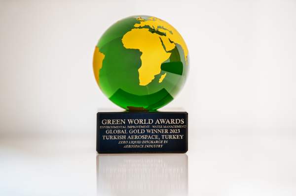 Türk Havacılık ve Uzay Sanayii Dünyanın en prestijli çevre ödül programlarından Global Green word Award 2023’te ”Su Yönetimi” kategorisine ”Altın Ödül”e değer görüldü.