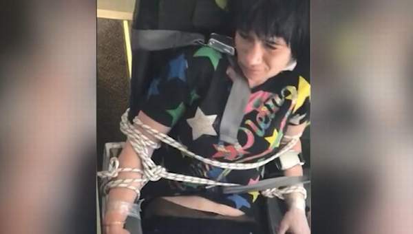 Kadın yolcu, kabin görevlileri ve diğer yolcular tarafından iple koltuğuna bağlandı.