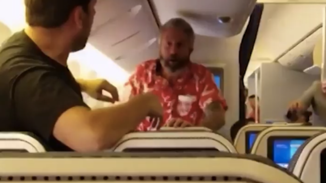Uçaktaki alkollü bir yolcunun sözlü saldırılarıyla çıkan kavganın ardından iki erkek yolcu birbirine girdi.