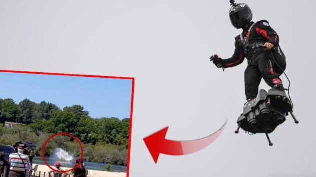 Uçan Adam’ lakaplı Zapata, jet motorlu aracıyla göle düşerek yaralandı.
