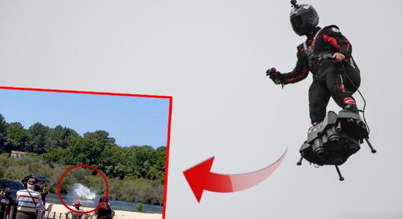 Fransız mucit Franky Zapata, flyboard adını verdiği uçan kaykayıyla yaptığı bir gösteri uçuşunda göle düştü.