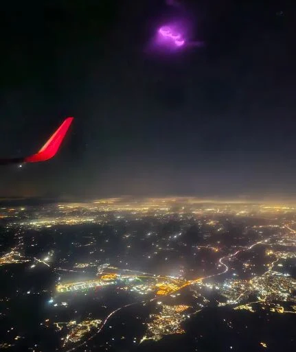 Çektiği videoda, alışılmadık şekilli dört pembe kürenin, aşağıdaki şehir manzarasından açıkça farklı olarak karanlık gece gökyüzünde net bir şekilde yanıp söndüğü görülüyor.