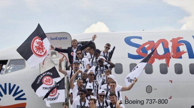 SunExpress’in resmi hava yolu partneri olduğu Eintracht Frankfurt takımı, UEFA Avrupa Ligi final maçını kazandıktan sonra Sevilla’dan yaklaşık 2,5 saatlik süren uçuşun ardından Frankfurt Havalimanı’na indi ve havalimanında coşkuyla karşılandı.