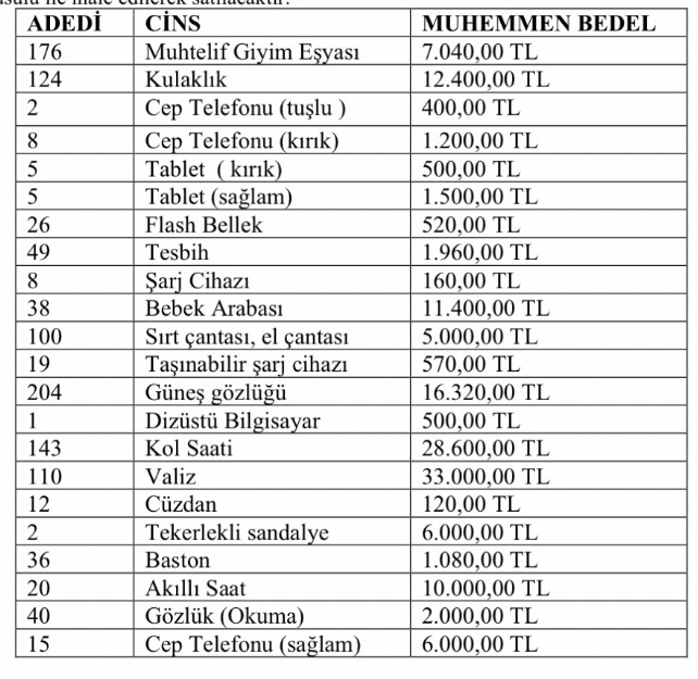 Havalimanında unutulan eşyalar satışta. Trabzon Havalimanı’nda unutulan 1143 muhtelif eşya ihaleyle satılacak!
