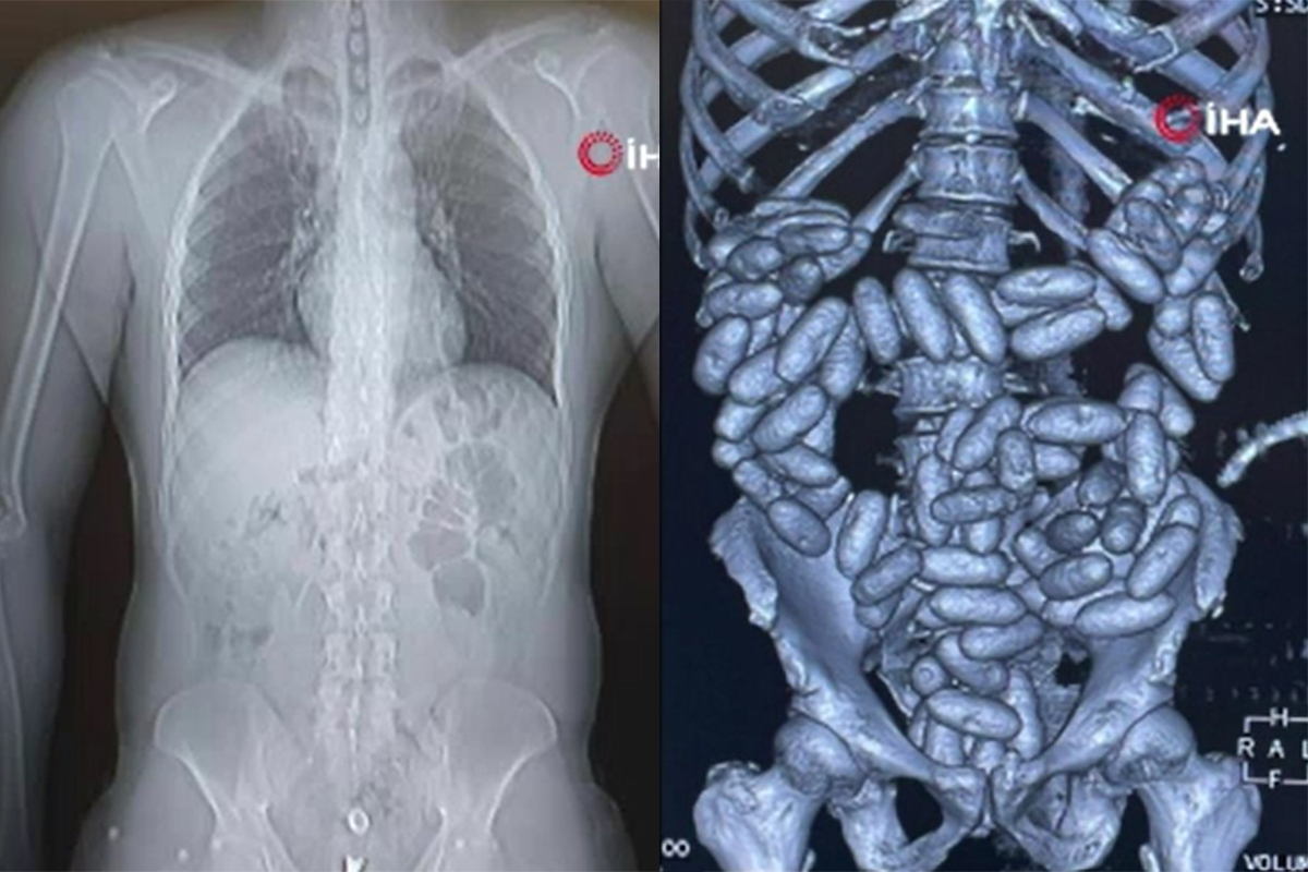 Cihazda, şüpheli yoğunluk tespit edilmesi üzerine zanlılar, muayene edilmek üzere hastaneye götürüldü. Burada yapılan tetkikler ve röntgen kontrollerinde, yolcuların sindirim sisteminden daralı ağırlığı 3 kiloyu bulan 360 kapsül içinde eroin tespit edildi.