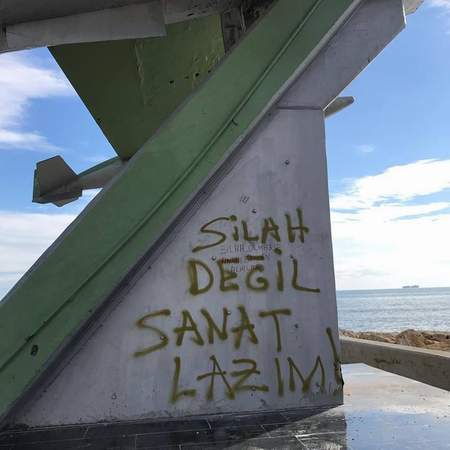 Mersin sahilinde sergilenen savaş uçağının üzerine yazılan bazı yazılar söz düellosuna döndü. Kimliği belirsiz bir kişinin “Silah değil, sanat lazım” yazısına “Silah olmasa ananı senden alırlar” yazısıyla karşılık verdi. Bu söz düellosu ise sosyal medyada gündem oldu.