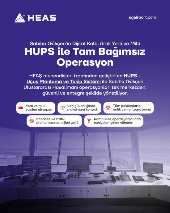 Sabiha Gökçen Havalimanı Meydan Otoritesi HEAŞ, havacılık sektöründe teknolojik bağımsızlık vizyonuyla önemli bir projeye imza attı. Daha önce yabancı menşeli sistemlerle yürütülen uçuş planlama ve takip süreçleri, artık HEAŞ mühendisleri ve teknik ekipler tarafından geliştirilen yerli ve milli yazılım HUPS (HEAŞ Uçuş Planlama ve Takip Sistemi) üzerinden yönetiliyor. 2010 yılından bu yana sürekli geliştirilen sistem, bugün havayolu şirketlerinden terminal işletmecisine kadar Sabiha Gökçen Havalimanı ekosistemindeki tüm paydaşların ana veri kaynağı haline geldi.