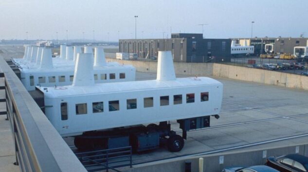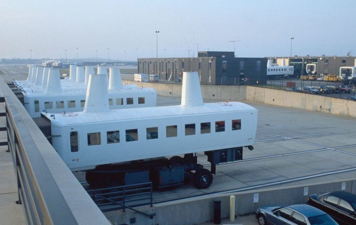 Dulles Uluslararası Havalimanı’nda terminal binaları arasında yolcu taşımak için kullanılan araç, kenetlenmesi gereken binanın peronuna çarptı.