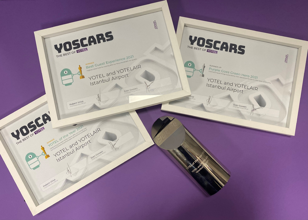 İstanbul Havalimanı ana terminali içerisinde kara tarafında YOTEL ve hava tarafında YOTELAIR otelleriyle faaliyet gösteren YOTEL İstanbul Havalimanı, 2021 yılında verilmeye başlanan YOSCAR ödüllerinde yılın YOTEL’i, En iyi Müşteri deneyimi veren oteli ve Sürdürülebilirlik, Çevre ödülleri ile birlikte 3 ödüle layık görüldü. YOTEL’in sunduğu en iyiyi kutlayan ödül, marka değerlerini ve operasyonel mükemmelliği sergiliyor.
